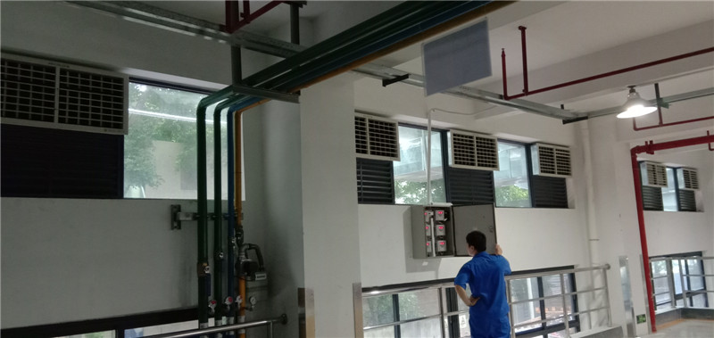 室外新風(fēng)在通過空調(diào)機的“多層波紋纖維疊合物”濕簾時,由于一定比例的水蒸汽混入空氣,因此送入房間的新風(fēng)將增加房間內(nèi)空氣的濕度。由于科瑞萊節(jié)能環(huán)保空調(diào)機適用場所為開敞式或半開敞式,室外新風(fēng)經(jīng)空調(diào)機降溫、加濕后源源不斷地進入房間,房間內(nèi)的污濁空氣則被排出室外,從而保證了室內(nèi)空氣的清凉、新鮮,達(dá)到了凈化室內(nèi)空氣的目的。