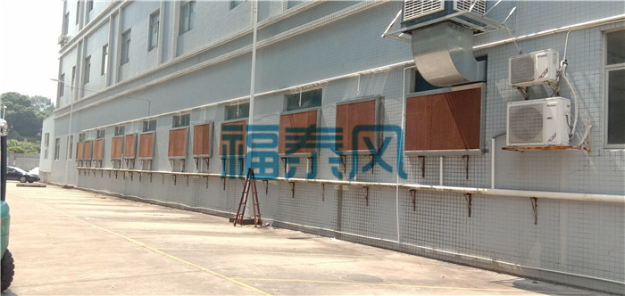 廠房車間安裝負壓風機的對面或者側(cè)面墻壁的窗戶上安裝降溫水簾系統(tǒng),把進入車間內(nèi)的補充空氣經(jīng)過降溫水簾二次降溫,變成溫度更低的空氣被負壓風機強行引入到車間內(nèi)降溫,此方法與負壓風機配合使用降溫效果較好,需要注意的是水簾降溫系統(tǒng)空氣的量和速度要足夠補充車間內(nèi)高溫悶熱空氣排出的量和速度,而且要做好車間的密封,盡量保證進入車間的空氣經(jīng)過降溫水簾系統(tǒng)。